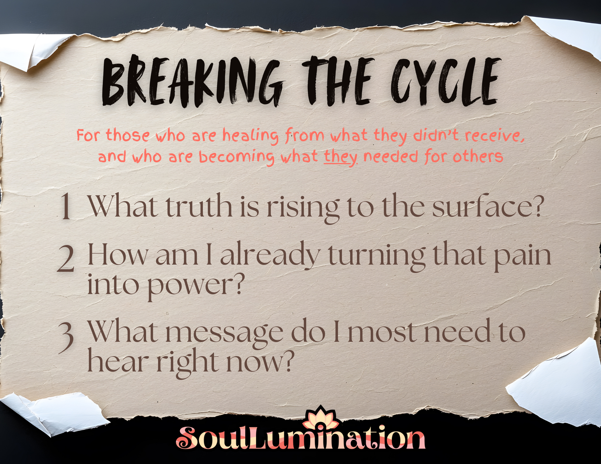 This card highlights the ways you’ve broken generational patterns. How your very existence, love, or courage is part of rewriting the story.
