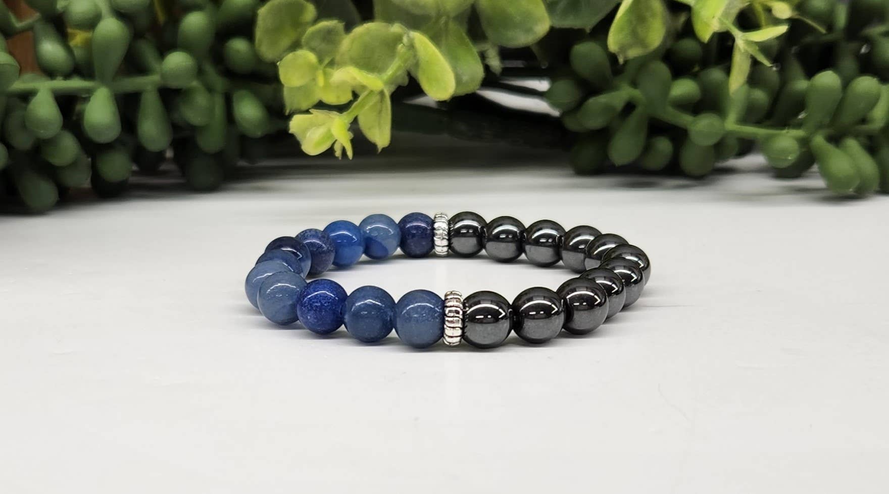 Forge your way forward with Pathfinder, a stretchable bracelet designed with natural Hematite and Blue Aventurine. Part of our Intention Bracelet Set, this piece supports grounding, direction, and resilience. The perfect ally for embracing change and finding your next step with confidence.