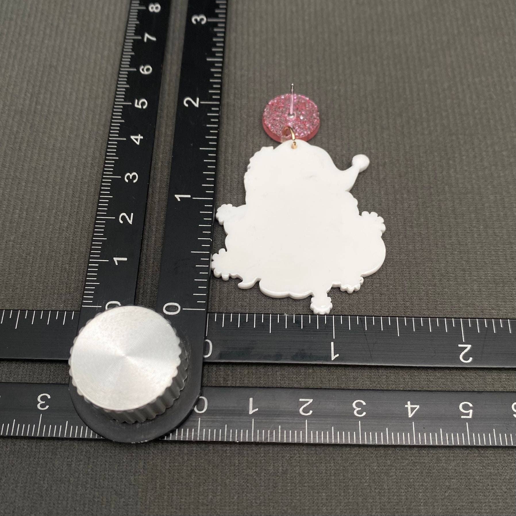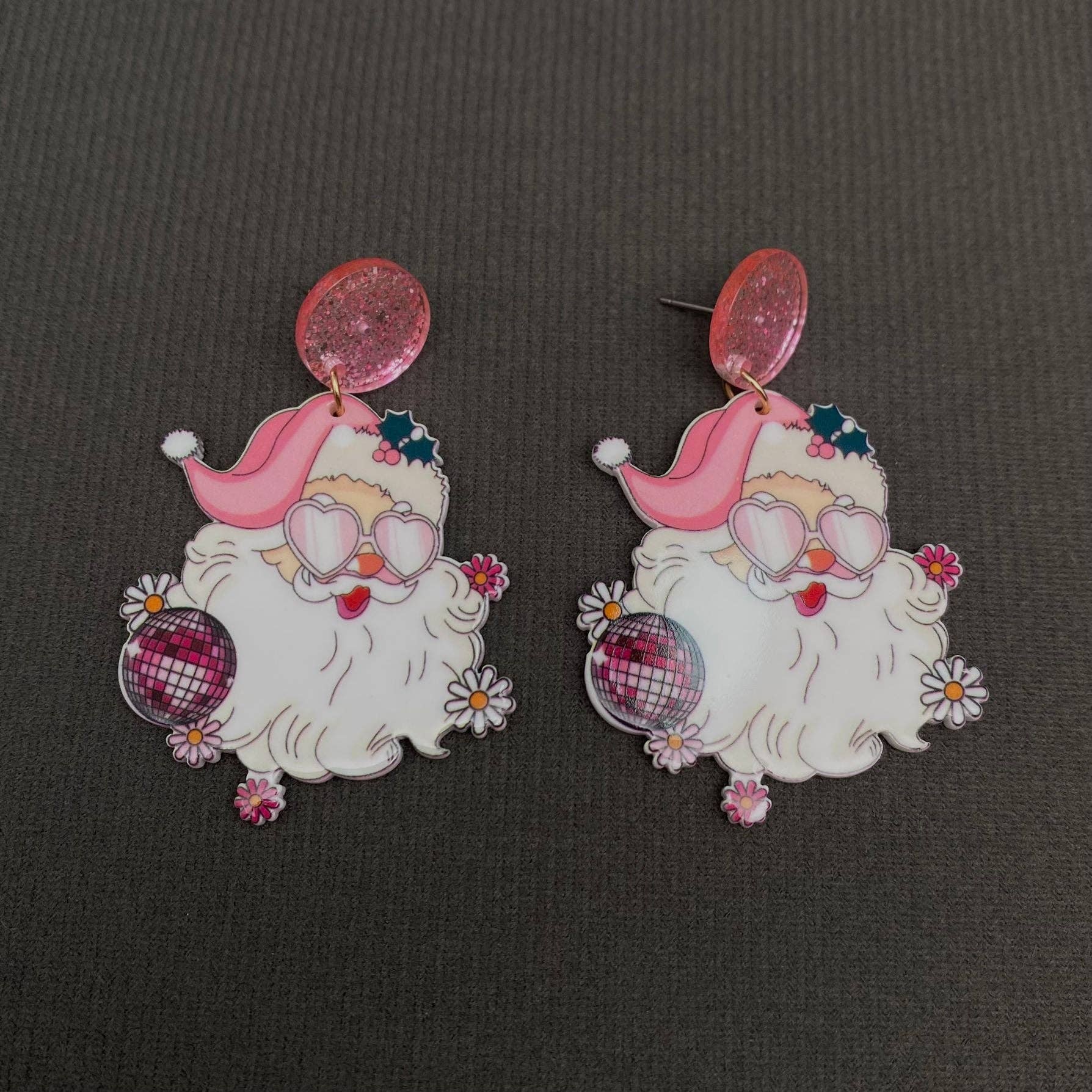 Add some sparkle and sass to your holiday look with these Disco Santa Earrings! Featuring a groovy Santa in pink shades, a sparkly hat, and festive disco ball details, these acrylic earrings bring vintage vibes and modern cheer together in one playful design.