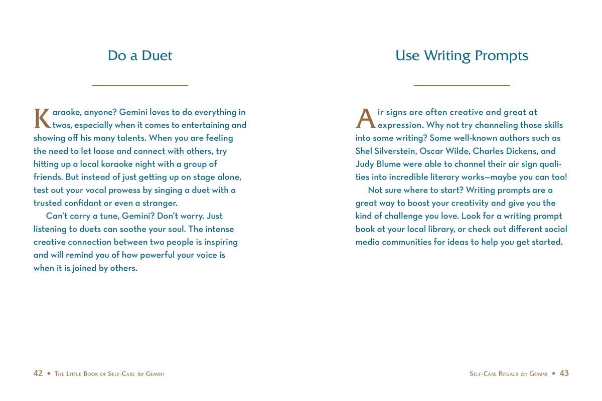 From eucalyptus aromatherapy to listening to choir music, you will find more than one hundred ways to heal your mind, body, and active spirit. It’s stellar self-care especially for you, Gemini!