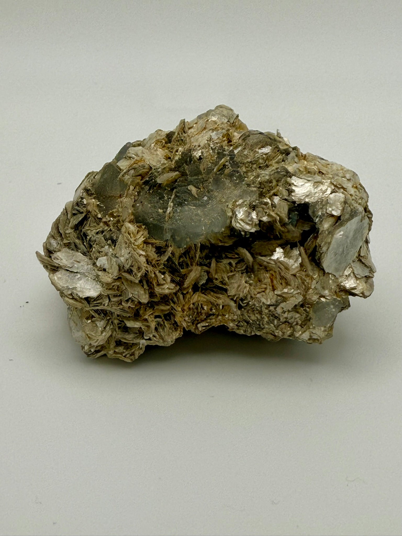 This stunning Mica and Aquamarine Cluster is a harmonious combination of two powerful crystals, radiating calming and uplifting energy. Aquamarine, known as the "Stone of Courage and Tranquility," promotes clarity, emotional balance, and open communication, while Mica enhances insight, self-reflection, and grounding energy.
