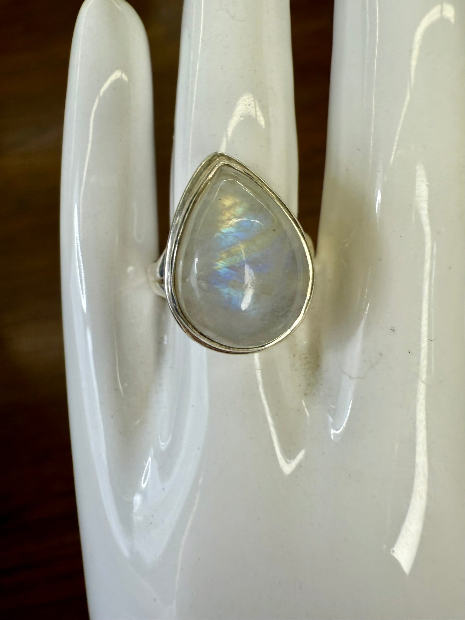Rainbow Moonstone Ring – The Stone of Intuition & New Beginnings (Size 5)